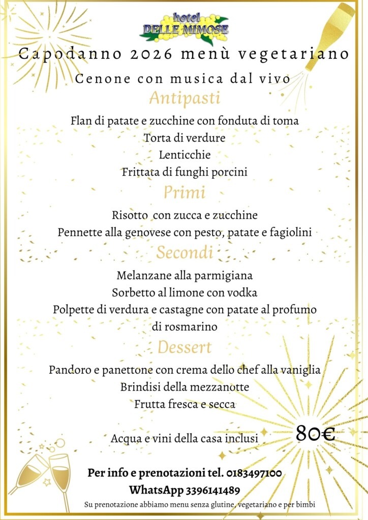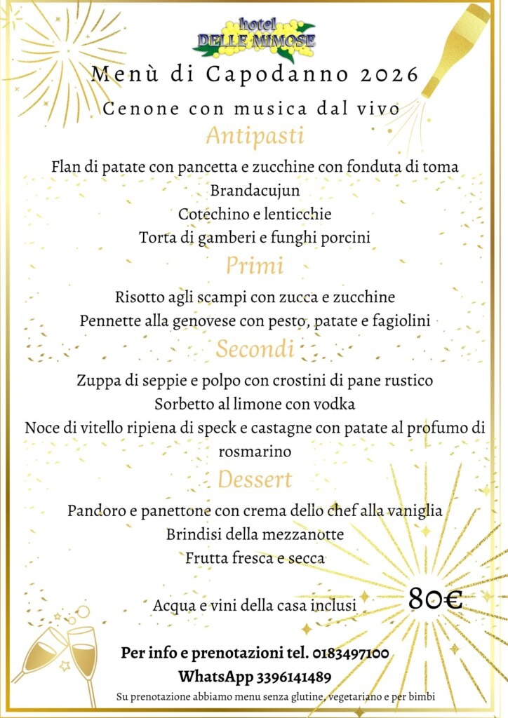 MENU’ DEL CENONE DI CAPODANNO 2026, 80€, ACQUA E VINO DELLA CASA INCLUSI